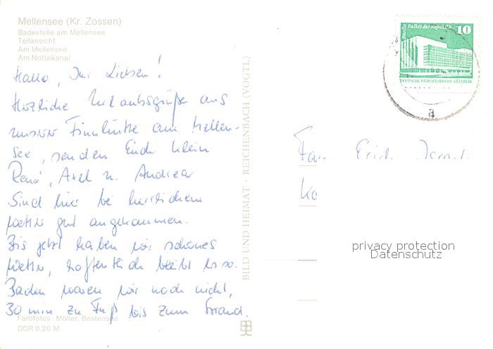 72985853 alte Postkarte Mellensee Badestrand Mellensee Teilansicht Nottekanal postalisch gelaufen Erhaltung siehe scans [WerneD78] KatCode: 11110012072002