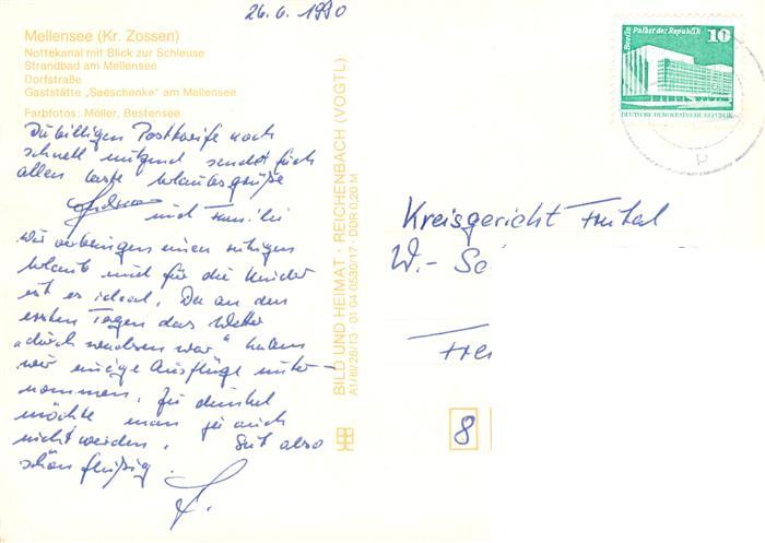 73893946 Mellensee Nottekanal mit Schleuse Strandbad Dorfstrasse Gaststaette Seeschaenke postalisch nicht gelaufen Erhaltung siehe scans [FriedD77] KatCode: 11110012072002