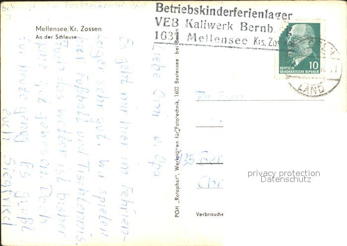 72032328 alte Postkarte Mellensee Schleuse postalisch gelaufen Erhaltung siehe scans KatCode: 11110012072002