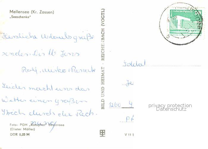 72704307 alte Postkarte Mellensee Seeschenke postalisch gelaufen Erhaltung siehe scans [FriedD77] KatCode: 11110012072002