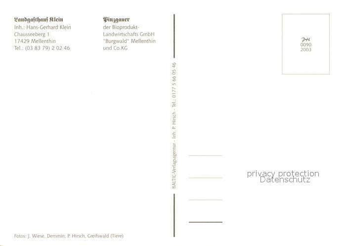 73652524 Mellenthin Landgasthaus Klein Gastraum Rinderherde Inselkarte postalisch nicht gelaufen Erhaltung siehe scans [WerneD78] KatCode: 11110013059111