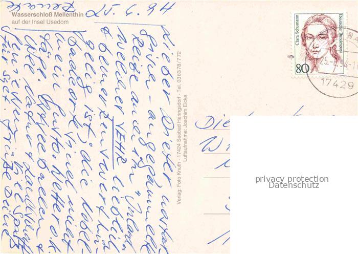 74043703 alte Postkarte Mellenthin Mecklenburg-Vorpommern Wasserschloss Mellenthin Insel Usedom postalisch gelaufen Fliegeraufnahme Erhaltung siehe scans [FriedD77] KatCode: 11110013059111