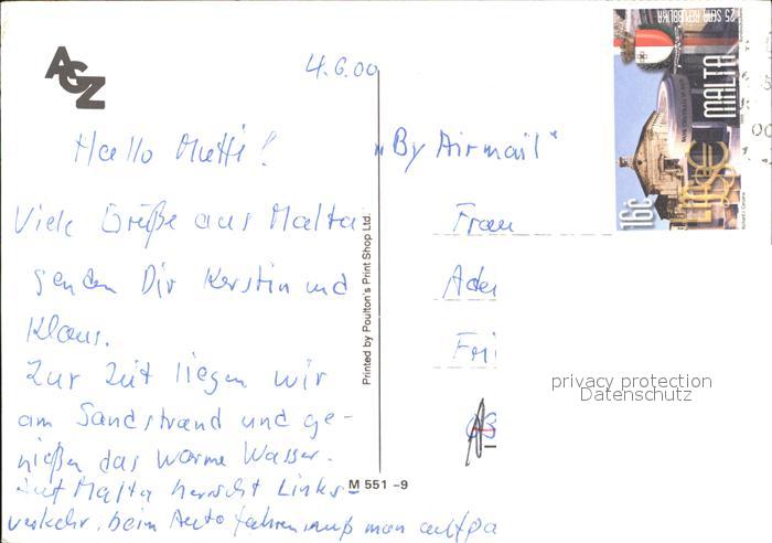 old postcard Mellieha Strand Kirche Fliegeraufnahme postalisch gelaufen