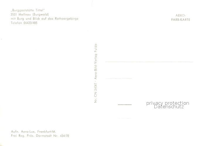 73040791 Mellnau Burggaststaette Tittel postalisch nicht gelaufen Erhaltung siehe scans [NatalD47] KatCode: 11110006534021