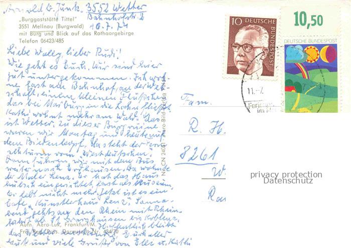74110269 alte Postkarte Mellnau Burgwald Wetter Hessen Burggaststaette Tittel postalisch gelaufen Erhaltung siehe scans [WerneD78] KatCode: 11110006534021
