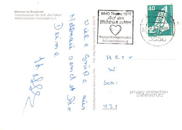 73212507 alte Postkarte Mellnau Freizeitzentrum der SJD Die Falken Fliegeraufnahme postalisch gelaufen Erhaltung siehe scans [WerneD78] KatCode: 11110006534021