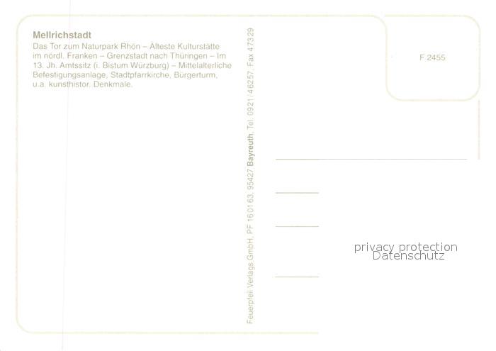 73209603 Mellrichstadt Brunnen Eingang Befestigungsanlage Stadtpfarrkirche Buergerturm Kunsthist Denkmale postalisch nicht gelaufen Erhaltung siehe scans [WerneD78] KatCode: 11110009673142