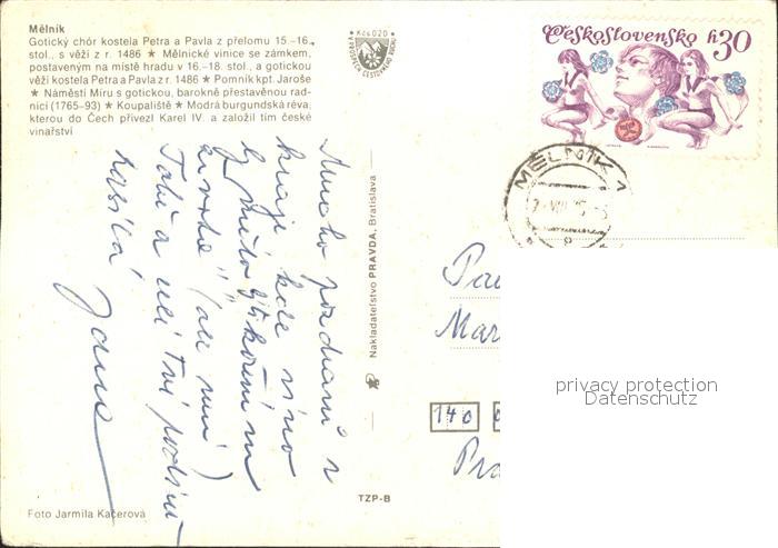 old postcard Melnik Tschechien Kirche Burg Denkmal Statue Weinreben Marktplatz Freibad postalisch gelaufen Erhaltung siehe scans