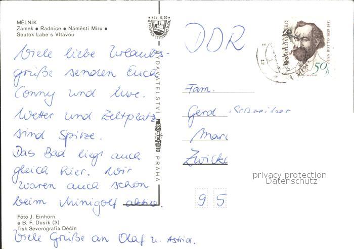 old postcard Melnik Tschechien Zamek Radnice Namesti Miru Soutok postalisch gelaufen Erhaltung siehe scans