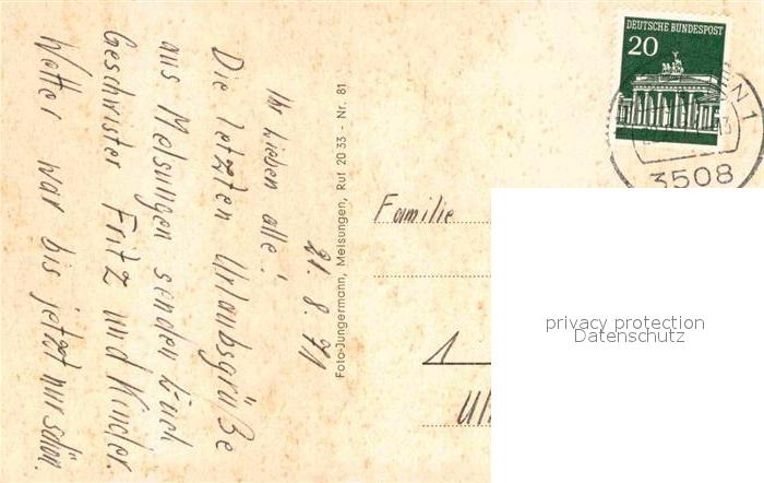 72885045 alte Postkarte Melsungen Fulda Blick von der alten Bruecke zum Lindenberg Luftkurort postalisch gelaufen Erhaltung siehe scans [FriedD77] KatCode: 11110006634014
