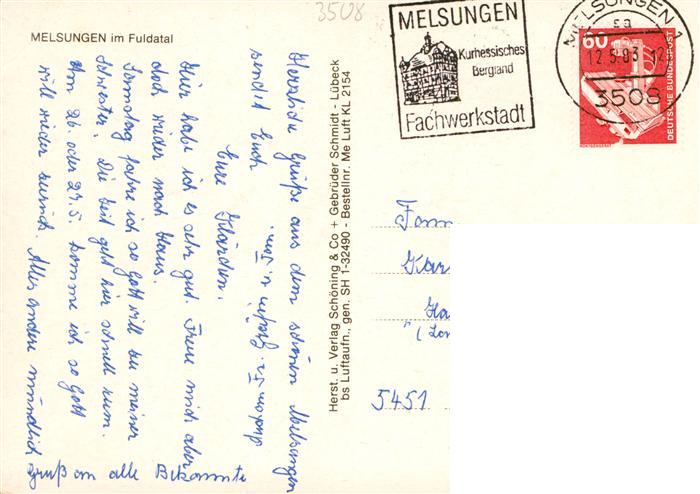 73936691 alte Postkarte Melsungen Fulda Fliegeraufnahme postalisch gelaufen Erhaltung siehe scans [WerneD78] KatCode: 11110006634014