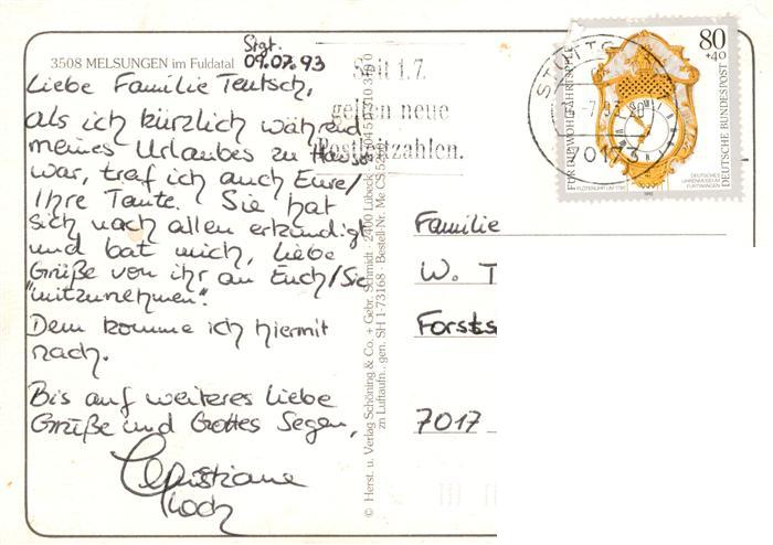 73881610 alte Postkarte Melsungen Fulda Fliegeraufnahme postalisch gelaufen Erhaltung siehe scans [WerneD78] KatCode: 11110006634014