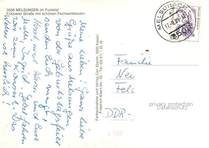73014739 alte Postkarte Melsungen Fulda Fritzlarer Strasse mit Fachwerkhaeusern postalisch gelaufen Erhaltung siehe scans [WerneD78] KatCode: 11110006634014
