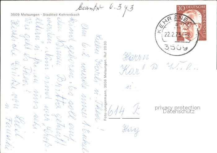 72096413 alte Postkarte Melsungen Fulda Kehrenbach postalisch gelaufen Erhaltung siehe scans KatCode: 11110006634014