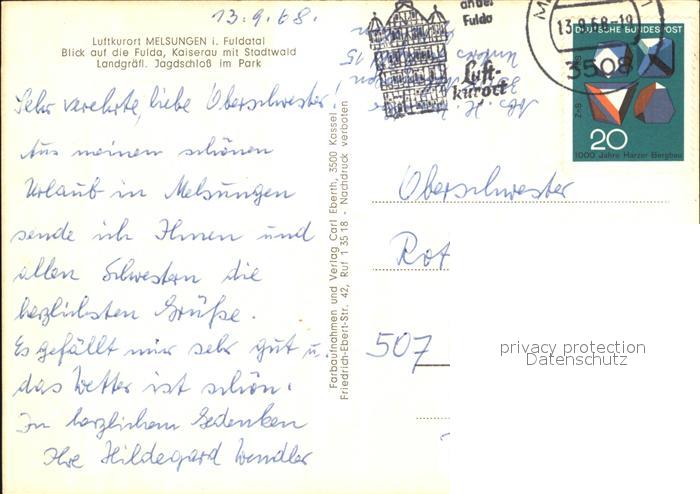 72439164 alte Postkarte Melsungen Fulda Panorama Schloss Schwanenteich postalisch gelaufen Erhaltung siehe scans KatCode: 11110006634014