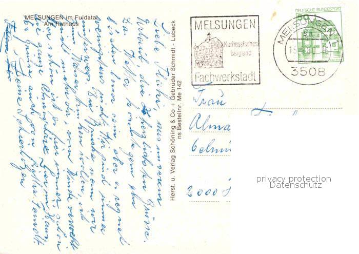 72846557 alte Postkarte Melsungen Fulda Rathaus postalisch gelaufen Erhaltung siehe scans [KathaD81] KatCode: 11110006634014