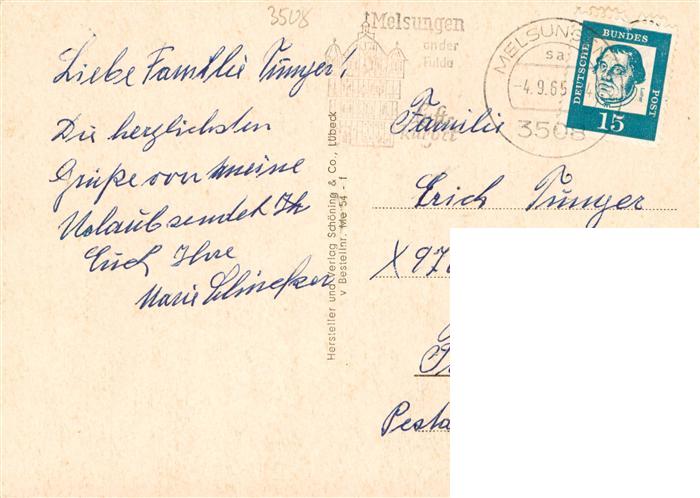 73936686 alte Postkarte Melsungen Fulda Stadtplatz Park Fuldapartie Ortsmotiv postalisch gelaufen Erhaltung siehe scans [WerneD78] KatCode: 11110006634014