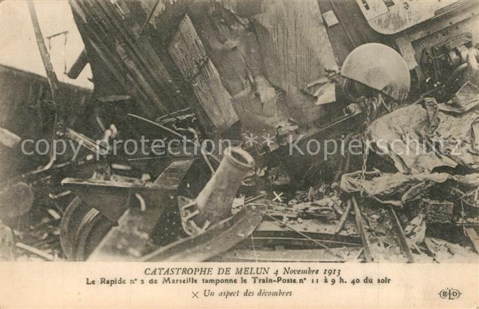 13567661 Melun Seine et Marne Catastrophe 4 Nov 1913 Le Rapide no 2 tamponne le Train-Poste no 11 Un aspect des decombres KatCode 11170077277288