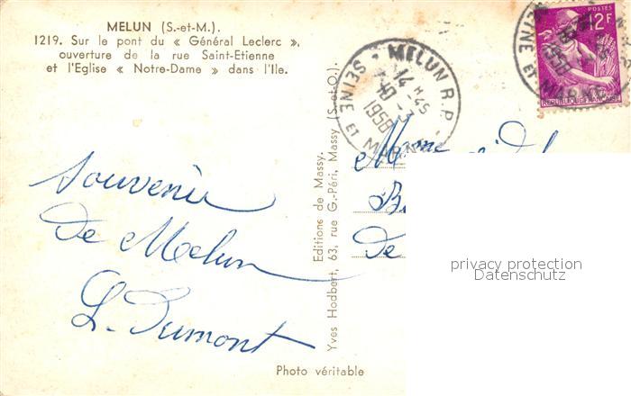 13534764 carte postale Melun Seine et Marne Pont General Leclerc Eglise postalisch gelaufen Erhaltung siehe scans [LiesaD40] KatCode: 11170077277288
