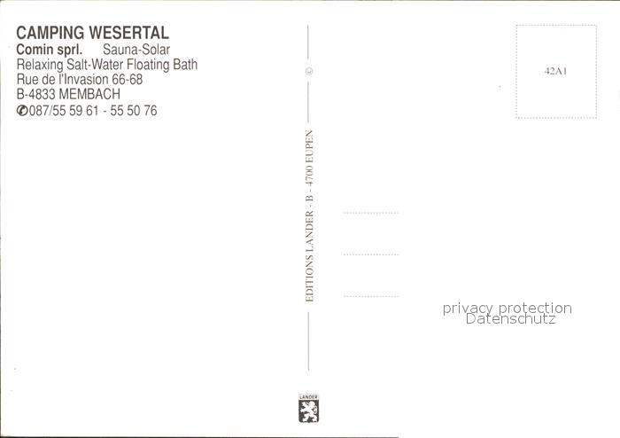 72922767 Membach Camping Wesertal postalisch nicht gelaufen Erhaltung siehe scans [LiesaD40] KatCode: 11070063008066