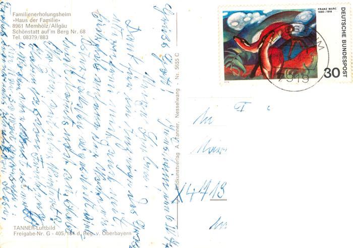 73886248 alte Postkarte Memhoelz Kempten Allgaeu Familienerholungsheim Haus der Familie Fliegeraufnahme postalisch gelaufen Erhaltung siehe scans [WerneD78] KatCode: 11110009780143