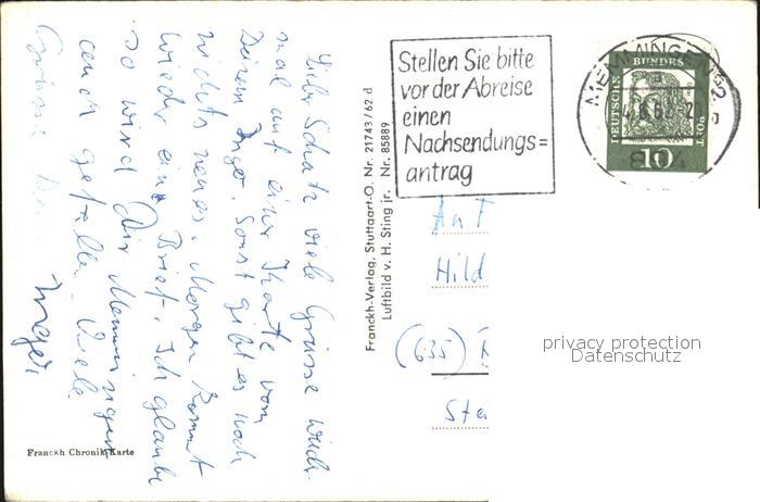 72475634 alte Postkarte Memmingen Bayern Fliegeraufnahme postalisch gelaufen Erhaltung siehe scans KatCode: 11110009764000