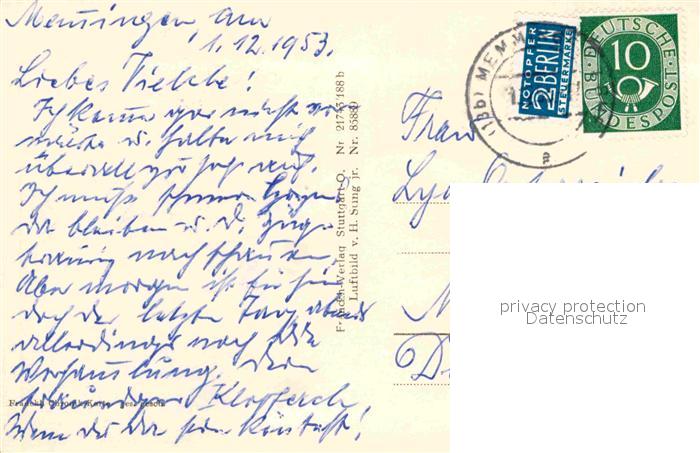 72775182 alte Postkarte Memmingen Bayern Flugaufnahme postalisch gelaufen Erhaltung siehe scans [KathaD81] KatCode: 11110009764000