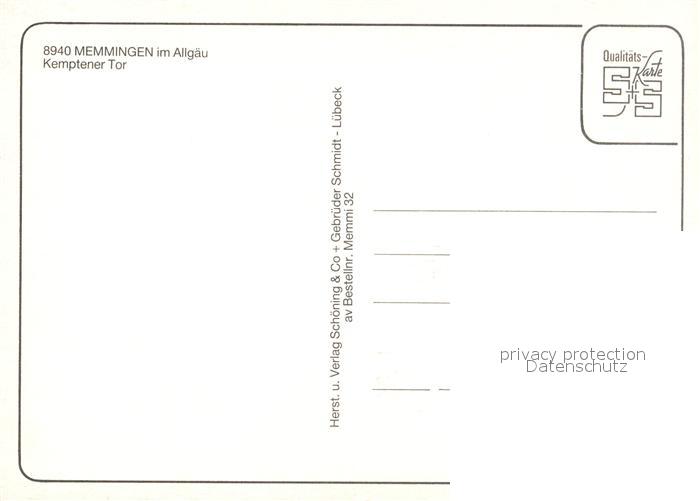 73226889 Memmingen Bayern Kemptener-Tor postalisch nicht gelaufen Erhaltung siehe scans [LiesaD40] KatCode: 11110009764000