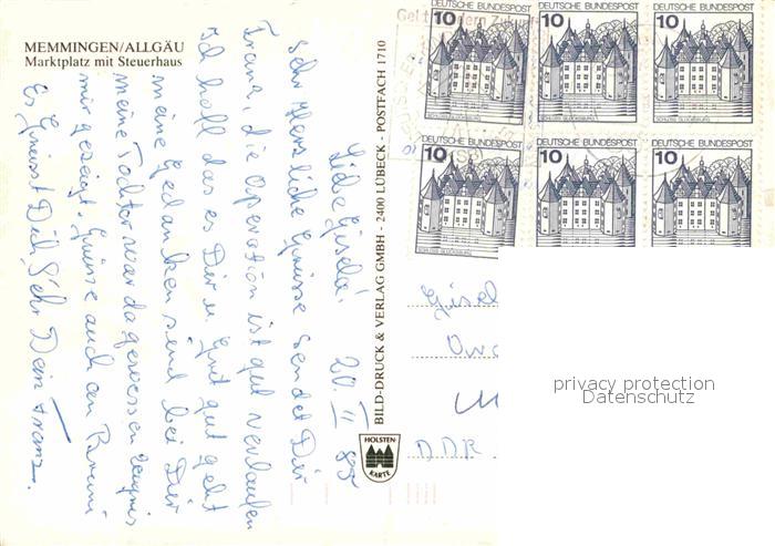 72888323 alte Postkarte Memmingen Bayern Marktplatz mit Steuerhaus postalisch gelaufen Erhaltung siehe scans [FriedD77] KatCode: 11110009764000