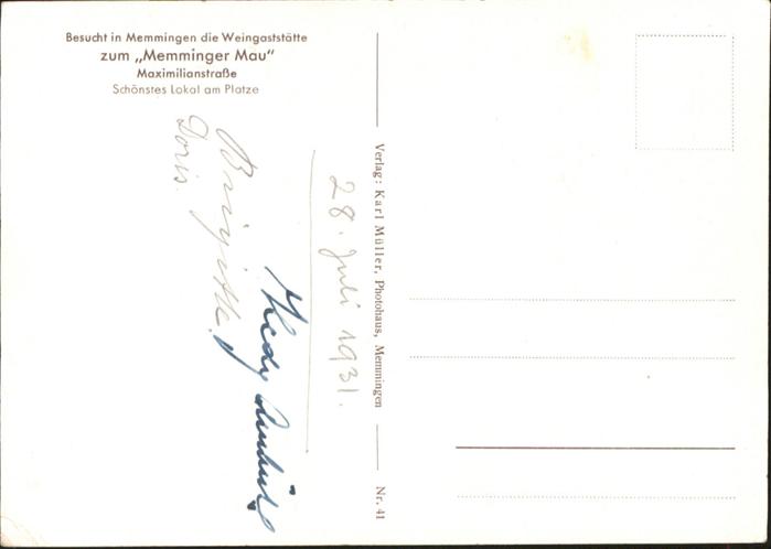 41017521 Memmingen Bayern Memminger Mau postalisch nicht gelaufen Alte Ansichtskarte Postkarte Katcode 11110009764000