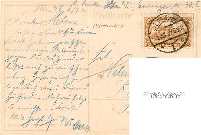 73798865 Memmingen Bayern Ortszentrum Kuenstlerkarte postalisch gelaufen Erhaltung siehe scans [FriedD77] alte Postkarte Frie Katcode 11110009764000