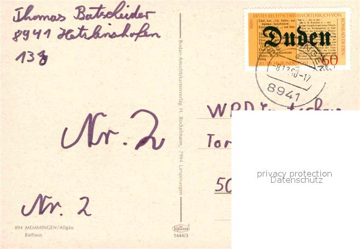 72764210 alte Postkarte Memmingen Bayern Rathaus postalisch gelaufen Erhaltung siehe scans [NatalD47] KatCode: 11110009764000