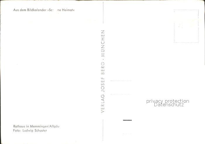 72250869 Memmingen Bayern Rathaus aus Bildkalender Sonnige Heimat postalisch nicht gelaufen Erhaltung siehe scans KatCode: 11110009764000