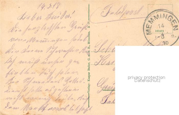 43350959 Memmingen Bayern Rathaus Stadtansichten postalisch gelaufen Feldpost – Stempel Erhaltung siehe scans [KathaD81] Feldpost – Stempel alte Postkarte Kath Katcode 11110009764000