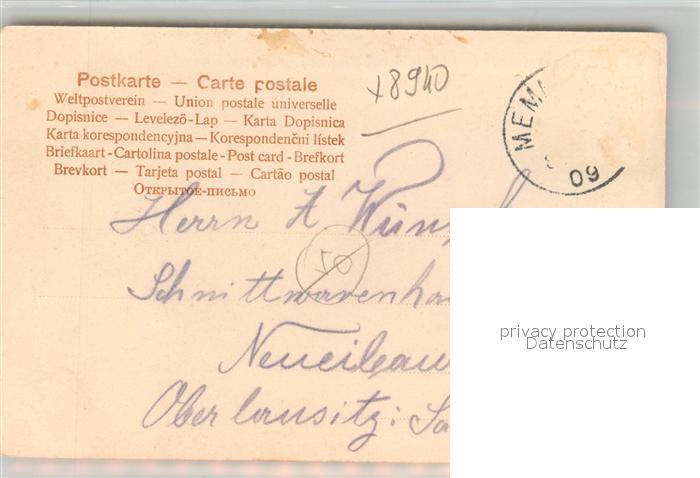 43349069 alte Postkarte Memmingen Bayern Sehenswuerdigkeiten der Stadt postalisch gelaufen Erhaltung siehe scans [FriedD77] KatCode: 11110009764000