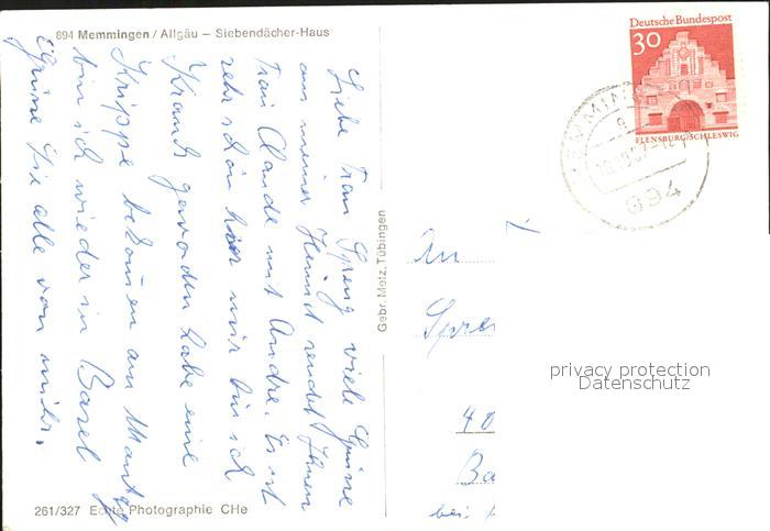 71994725 alte Postkarte Memmingen Bayern Siebendaecher Haus postalisch gelaufen Erhaltung siehe scans KatCode: 11110009764000