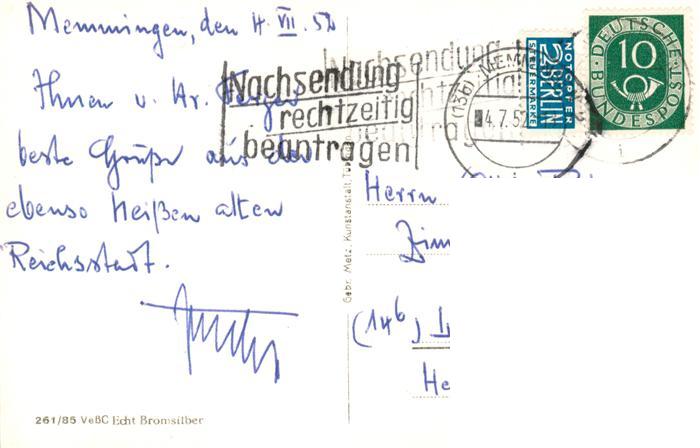 73959490 Memmingen Bayern Stadtzentrum Kirche Vollmond Bromsilber postalisch gelaufen Erhaltung siehe scans [FriedD77] alte Postkarte Frie Katcode 11110009764000