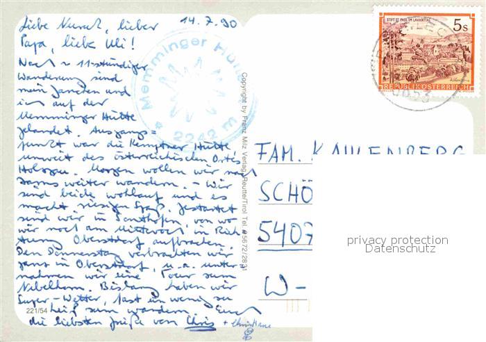 72901728 alte Postkarte Memminger Huette Berghaus Bergsee Lechtaler Alpen postalisch gelaufen Erhaltung siehe scans [FriedD77] KatCode: 11390331070828