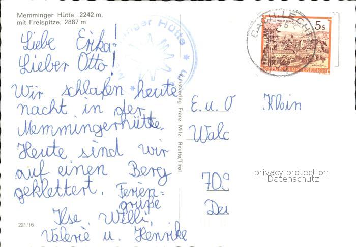 72242974 alte Postkarte Memminger Huette Freispitze postalisch gelaufen Erhaltung siehe scans KatCode: 11390331070828