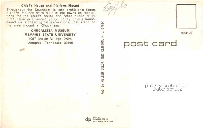 72907146 Memphis Tennessee Chiefs House Platform Mound postalisch nicht gelaufen Erhaltung siehe scans [NatalD47] KatCode: 14140450000000