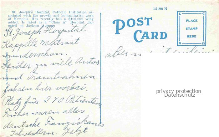 34143238 Memphis Tennessee St Josephs Hospital postalisch nicht gelaufen Erhaltung siehe scans [WerneD78] KatCode: 14140450000000