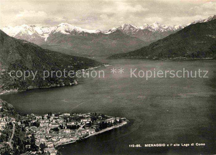 old postcard Menaggio Lago di Como Comersee Alpenpanorama Fliegeraufnahme postalisch gelaufen Erhaltung siehe scans [FriedD77]