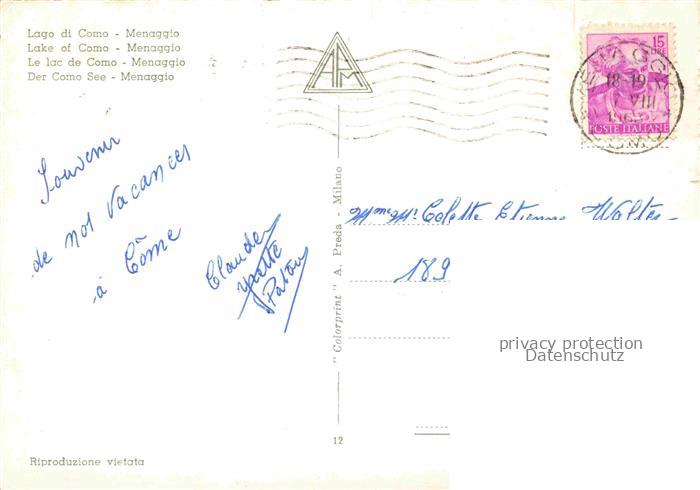 74034268 old postcard Menaggio Lago di Como Lombardia IT Panorama Blick ueber den See Alpen postalisch gelaufen Erhaltung siehe scans [FriedD77] KatCode: 11240