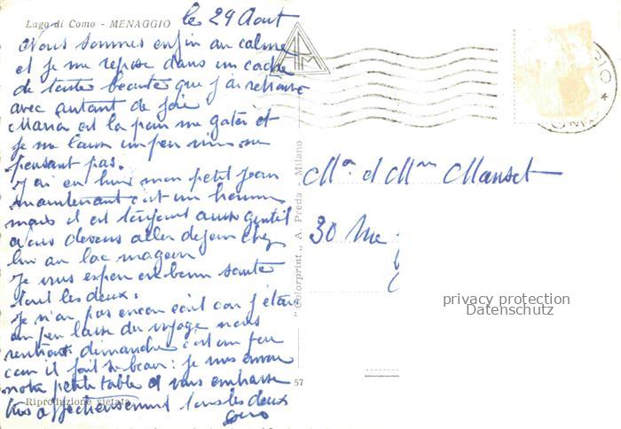 74034250 old postcard Menaggio Lago di Como Lombardia IT Restaurant Terrasse Blick auf den See postalisch gelaufen Erhaltung siehe scans [FriedD77] KatCode: 11240