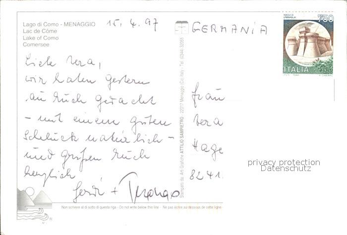 old postcard Menaggio Lago di Como Segelhafen postalisch gelaufen Erhaltung siehe scans