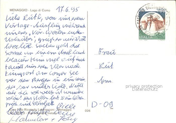 old postcard Menaggio Lago di Como Teilansicht postalisch gelaufen Erhaltung siehe scans