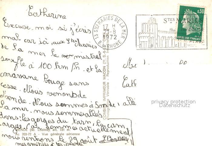 13585745 Mende Vue aerienne postalisch gelaufen Erhaltung siehe scans [PaolaD17] carte postale Paol Katcode 11170048248095