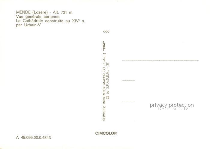 13599272 Mende Vue generale aerienne La Cathedrale par Urbain V postalisch nicht gelaufen Erhaltung siehe scans [WerneD78] Wern Katcode 11170048248095