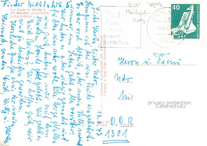 72905945 alte Postkarte Menden Sauerland Fliegeraufnahme postalisch gelaufen Erhaltung siehe scans [AndreD76] KatCode: 11110005962040