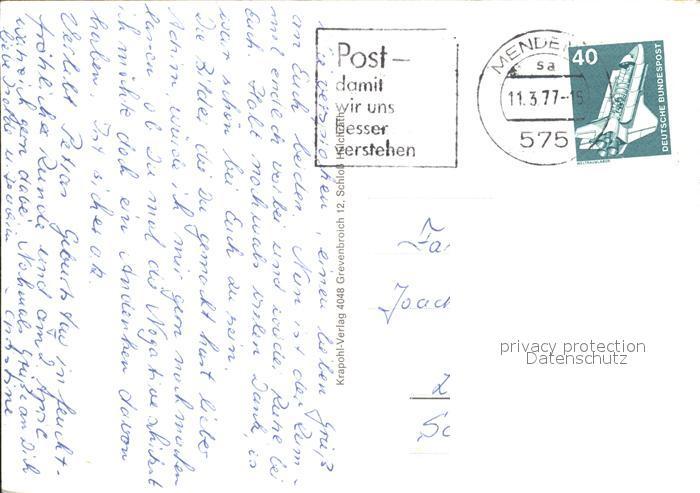 72382088 alte Postkarte Menden Sauerland Hallenbad Sankt Vincenz-Kirche Burg Klusenstein postalisch gelaufen Erhaltung siehe scans KatCode: 11110005962040